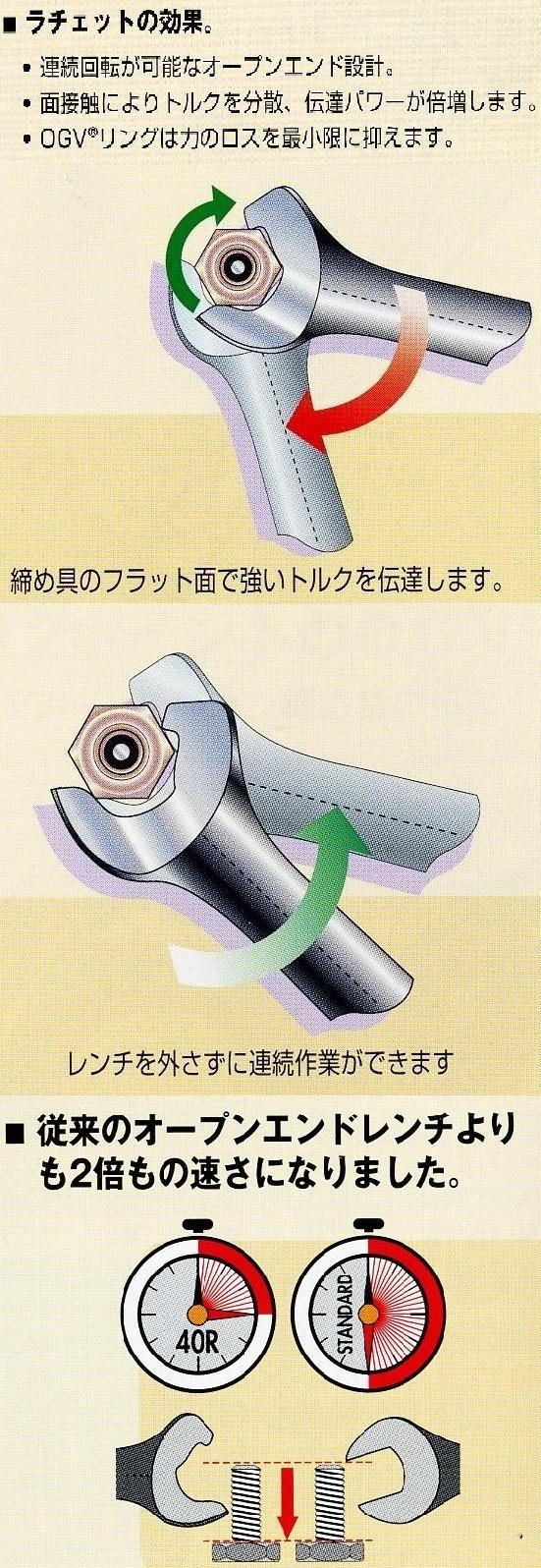 このレンチは、ラチェットの機能を併せもった新しいタイプのコンビネーションレンチです。